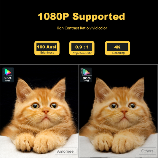 Amornee Mini Version:Mini Projector with Wifi and Bluetooth,Home Movie Projector for Bedroom Full HD 1080P Auto Keystone Correction, 35"-130" Screen, Compatible with Android/iOS/Windows/TV Stick/HDMI/USB