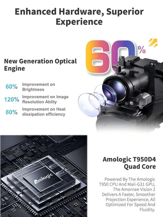 [Netfix Official Certified & Auto Focus] Amornee Vision 2 Beam 4K Mini Projector with WiFi and Bluetooth, Outdoor Movie Portable Projector for Outdoor/Ceiling/Bedroom/Home Theater Use, 1080P FHD 800ANSI Auto Keystone Andriod 13